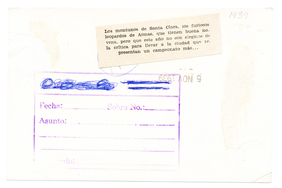 Original 1939-40 Santa Clara team photo featuring Negro Leaguers Sam Bankhead, Vic Harris, and Roy Partlow as well as Cubans Jose Maria Fernandez, Santos Amaro, Rene Monteagudo, etc.