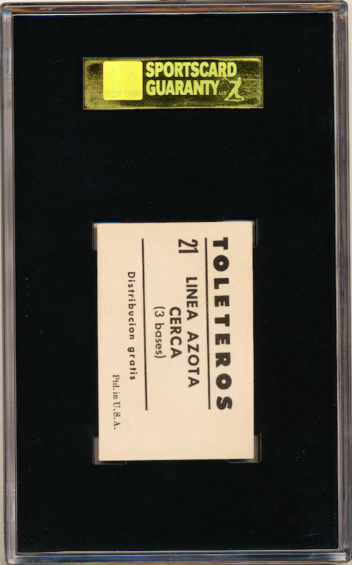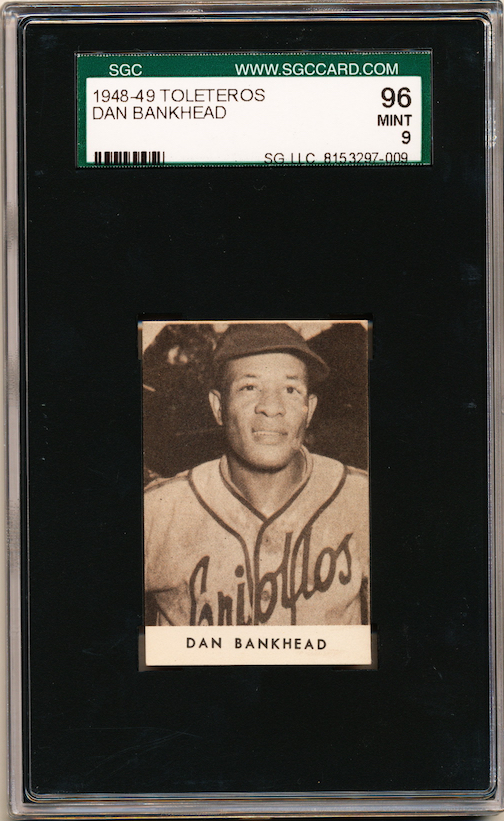 1948-49 Toleteros card of Dan Bankhead. Graded a 96 (Mint) by SGC. This not a typo. This is a nearly 70-year-old card issued in Puerto Rico that has been graded Mint. For some perspective, there have been 6 examples of this card graded by SGC. The next highest example is a 50, followed by a 40, a 20, and two 10s.