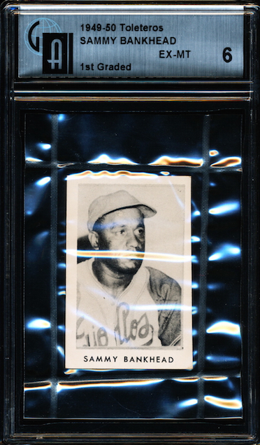 1949-50 Toleteros card of Negro Leaguer, Sam Bankead. A high-grade example that has been cracked out of a GAI 6 holder.